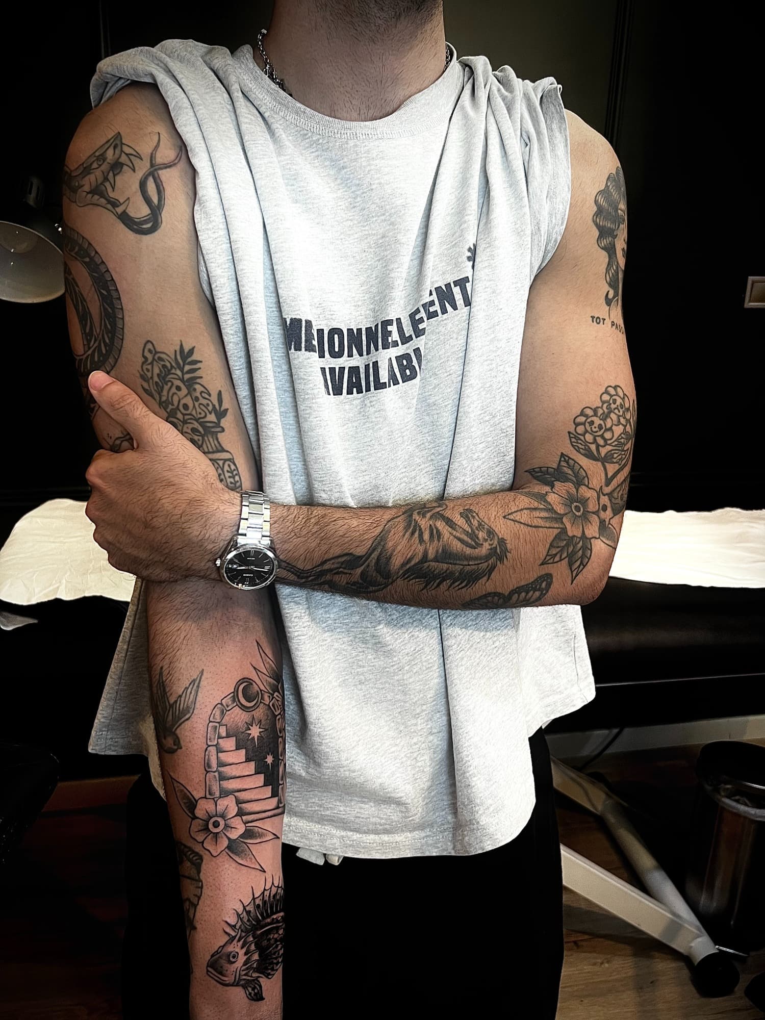 10 años de experiencia. Especializada en estilos: Tribal, Ornamental, Tradicional, Blackout y proyectos grandes.